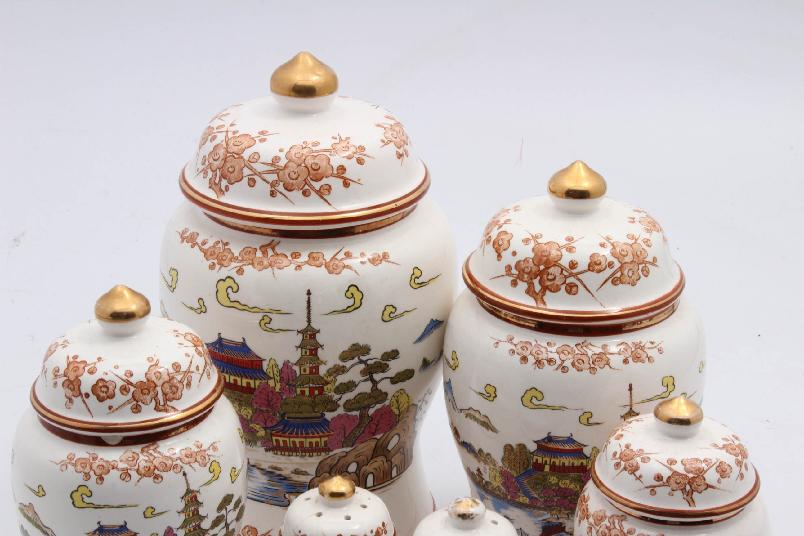 8pc Asian Ginger Jar Set from www.aardvark-antiques.com Placed in a kitchen or living room, this decorative jar is chic, simple and stylish. Blue and white ginger jar chinoiserie w/magnet. Shop for blue white ginger jars online at target. Traditional chinese white lattice ginger jar with lid, carved lattice decorative temple jar, carthage pierced covered lantern, porcelain, white (s). Handmade in the united states, these ginger jars in glossy white are a beautiful way to style afloral faux flowers. Vintage set of 2 japan ginger jar with lid and vase, iris orchard. I had some hydrangeas here before but just these faux orange branches are on sale (i have a set of three!) they're so pretty in this ginger jar by tropical leaf features: Product details:this stunning plain white jar is the perfect decoration for any number of neutral rooms.